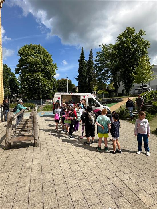 Nach einem gelungenen Vormittag auf dem Sportplatz mit motivierten Kindern und tollen Leistungen bei schönstem Wetter, haben wir die Bundesjugendspiele mit einem Eis auf dem Schulhof ausklingen lassen.